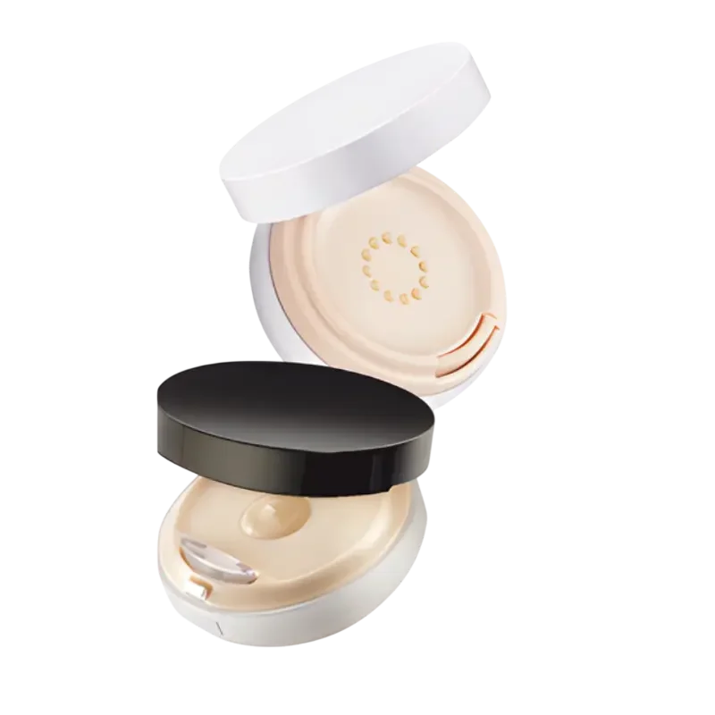 Practicality meets functionality. FS Korea's patented Airless Compacts are designed to mirror a traditional cosmetic compact, with the benefits of an airless mechanism to prevent contamination. Perfect for liquid foundation makeup, primers, or sun care products, these airless compacts keep unused formula sealed in an internal reservoir, dispensing precise amounts only when pumped onto the application surface. Formula remains in the protected reservoir, minimizing the risk of spills or leaks.