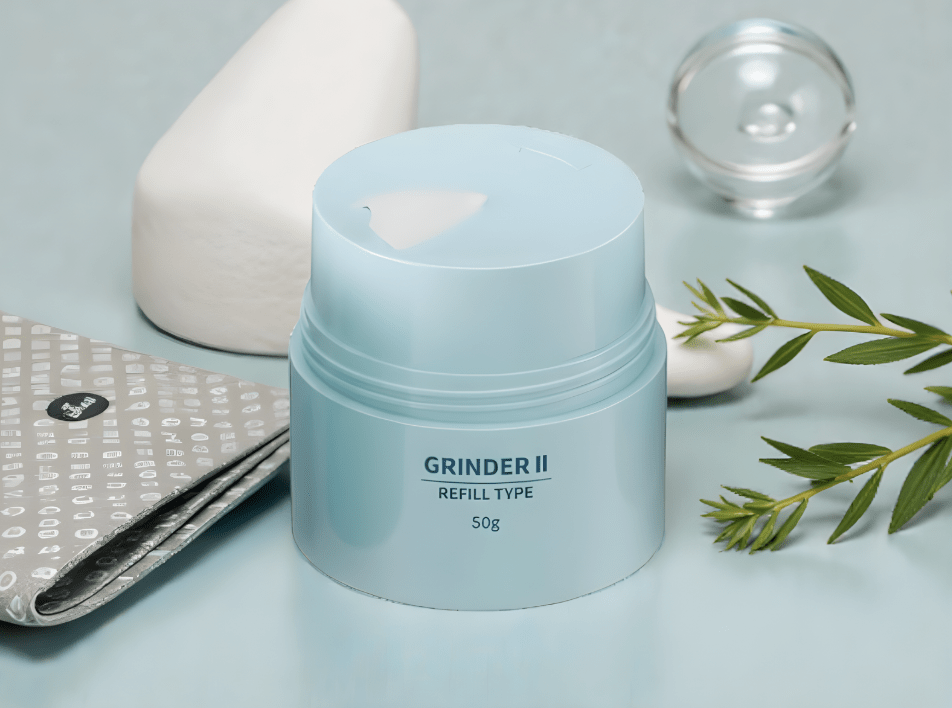 FS Korea's innovative refillable grinder jar turns application into an experience. A dual-actuated mechanism grinds cream formula onto the palette—just like sharpening a pencil. The result? Zero finger contamination, maximum hygiene. Built entirely from PP for seamless mono-material recycling, the refill pod system slashes plastic waste with every repurchase. Innovation that performs, sustainability that sells.